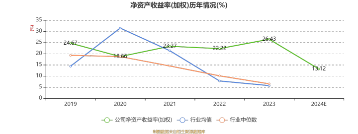 数据显示,2024年公司加权平均净资产收益率为13.12%,较上年同期下降13.31个百分点。